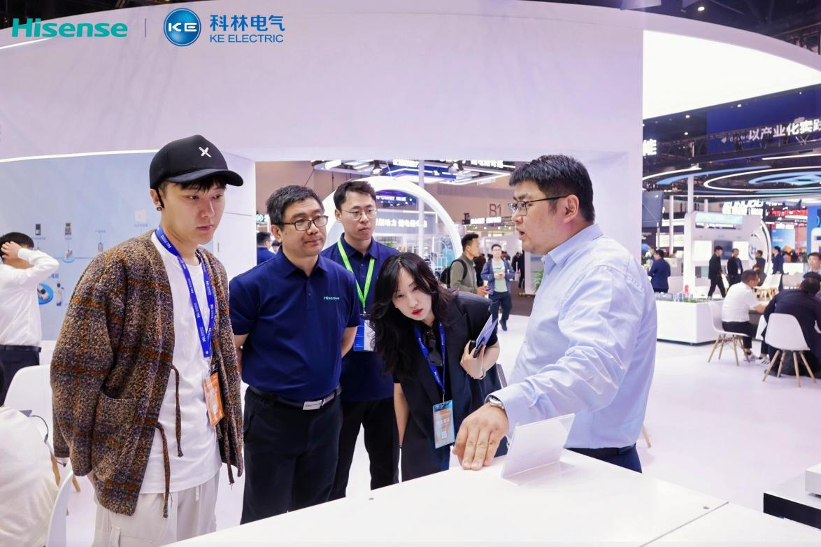 展台核心区域,海信网络能源与科林电气联合展示了户用光储充一体化解决方案。该方案整合海信Hi-Prime户储一体机与科林光伏逆变器、充电桩,通过模块化设计实现快速部署,支持并/离网无缝切换与动态能源调度,动态优化家庭能源调度,提升光伏消纳率与峰谷套利收益。