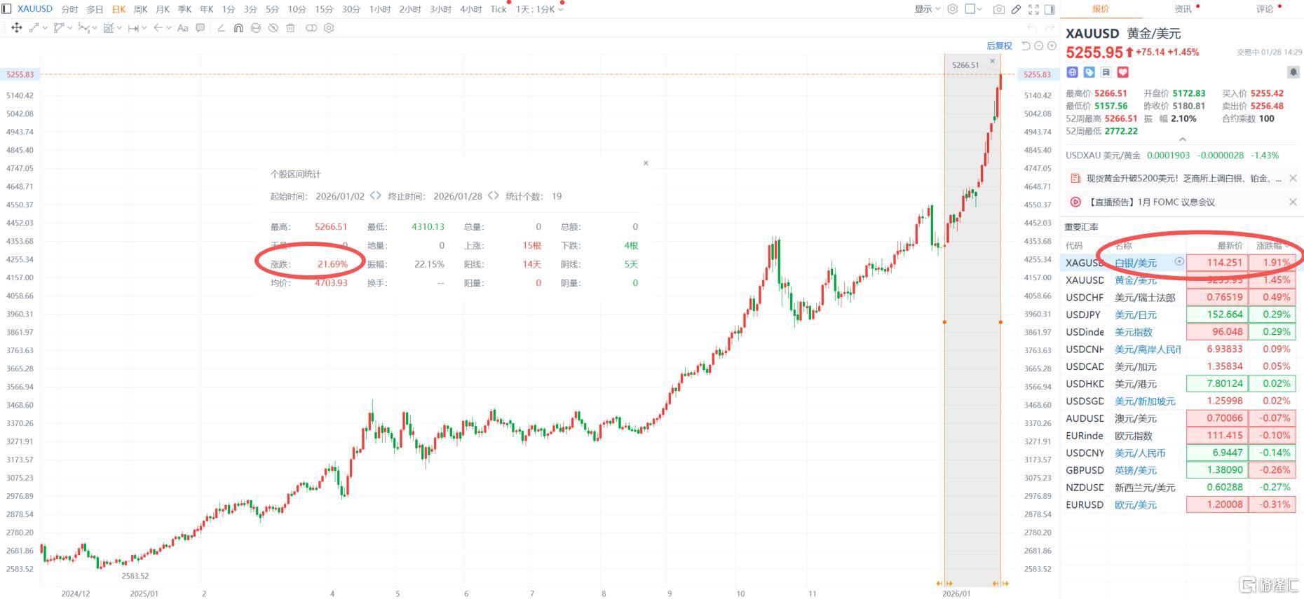周三,现货黄金升(sheng)破5250美元,续创(chuang)汗青新高;在经历日前的巨震后,现货白(bai)银现向上突破114美元/盎司。