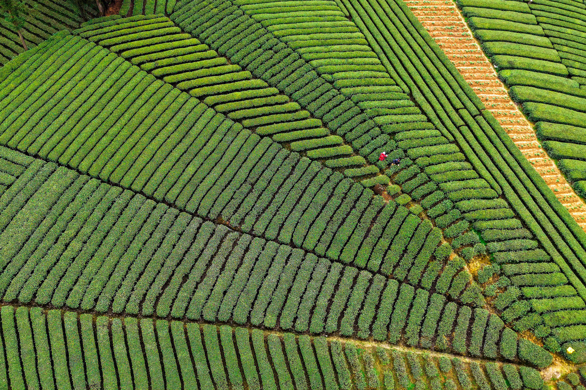 ↑2026年3月19日,湖北省恩施土家属(shu)苗族自治州咸丰县黄金洞乡金洞司村村民在采摘(zhai)明(ming)前茶。(无(wu)人(ren)机照片)CICPHOTO/李维君 摄(she)