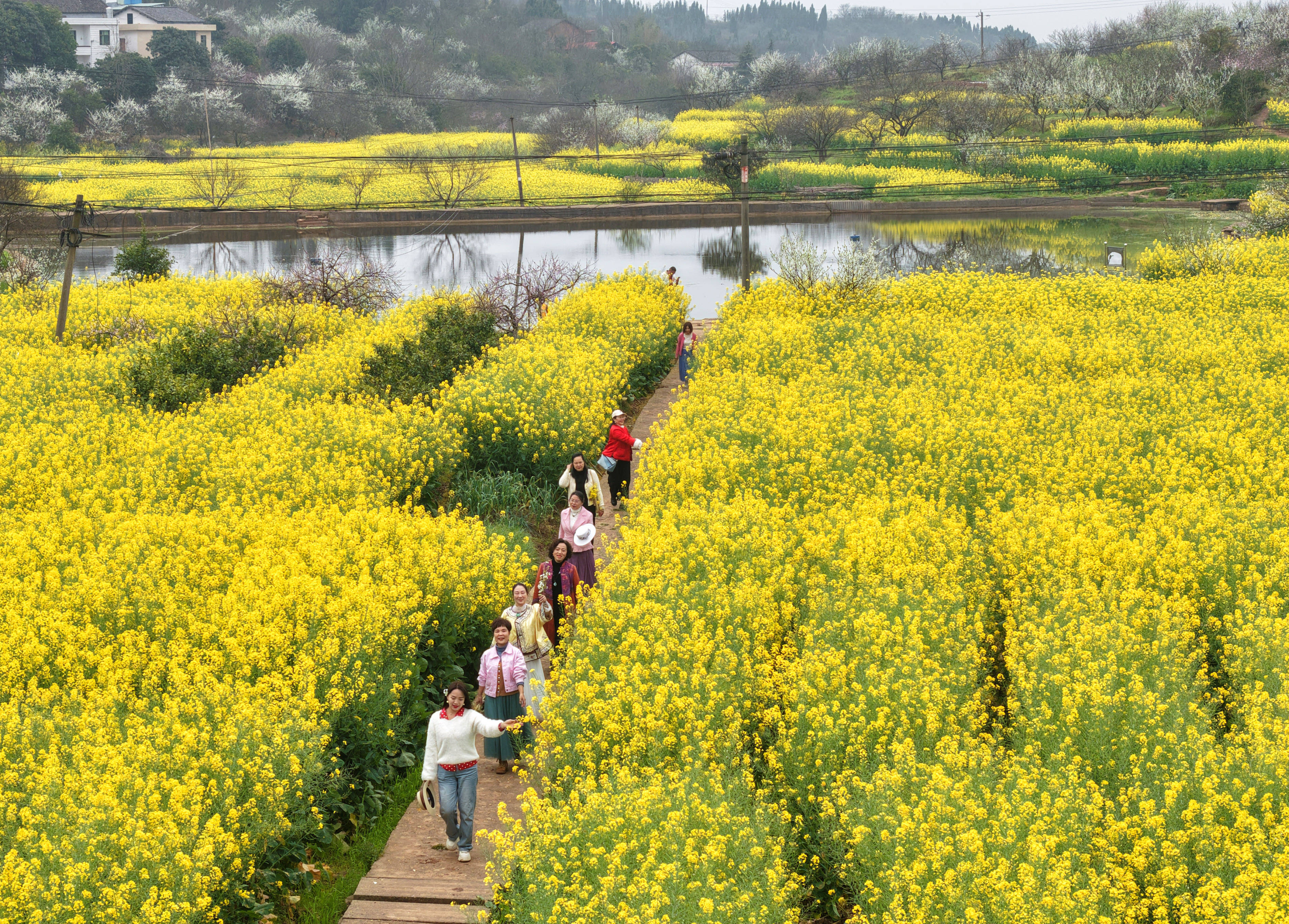 3月17日,游客在湖南省衡阳市衡山县萱洲镇踏青赏花(hua)。新华社发(曹正平摄)