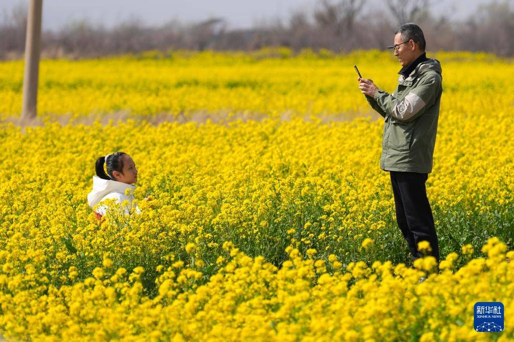 春日(ri),山西省运城市盐湖区(qu)西姚村的(de)油(you)菜花竞相开放,吸(xi)引不少游客(ke)前来观赏。