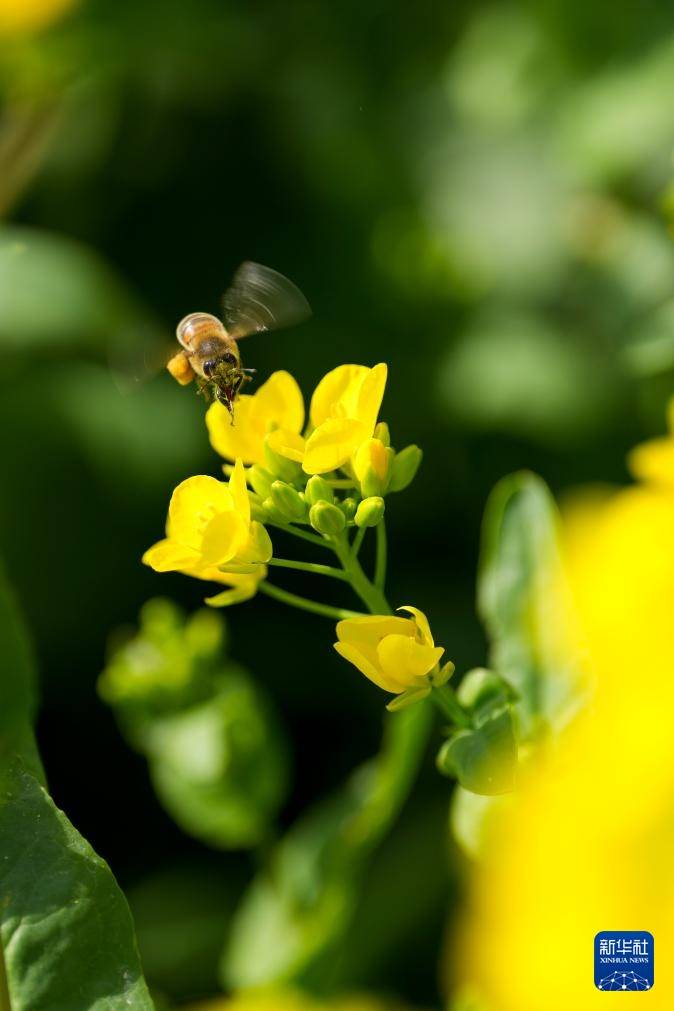 3月20日(ri),一只蜜蜂在花间采蜜。新华社记者 杨晨光 摄