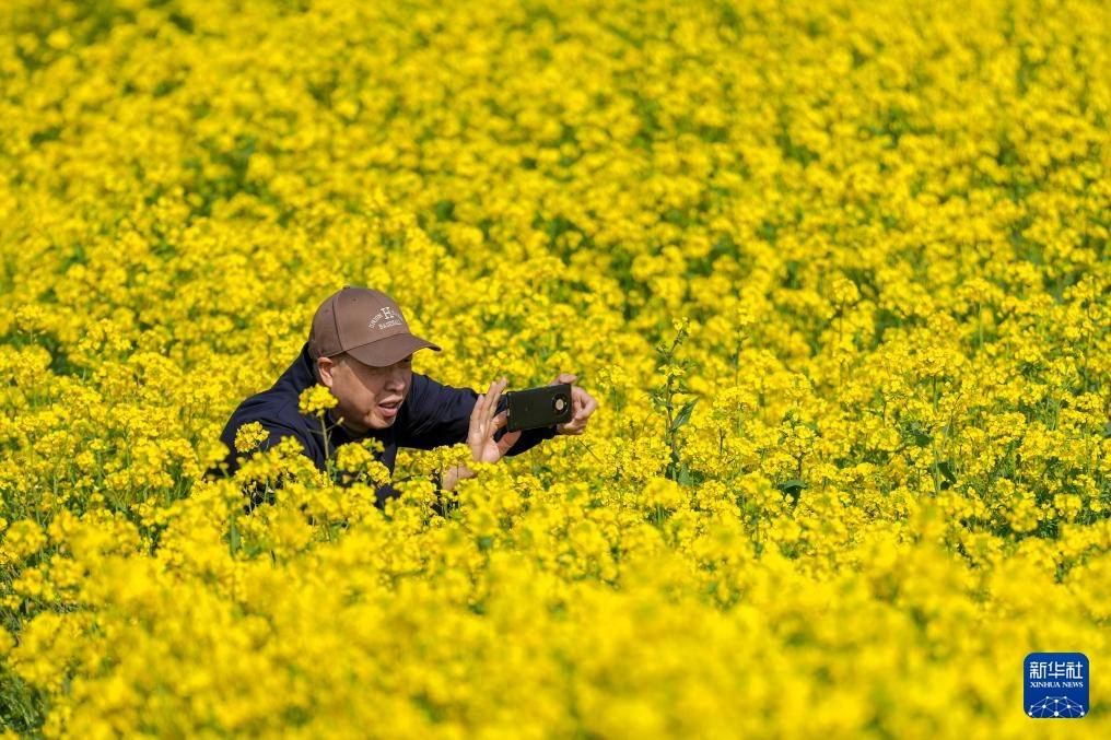 3月20日(ri),游客(ke)在油(you)菜花田拍照。新华社记者 杨晨光 摄