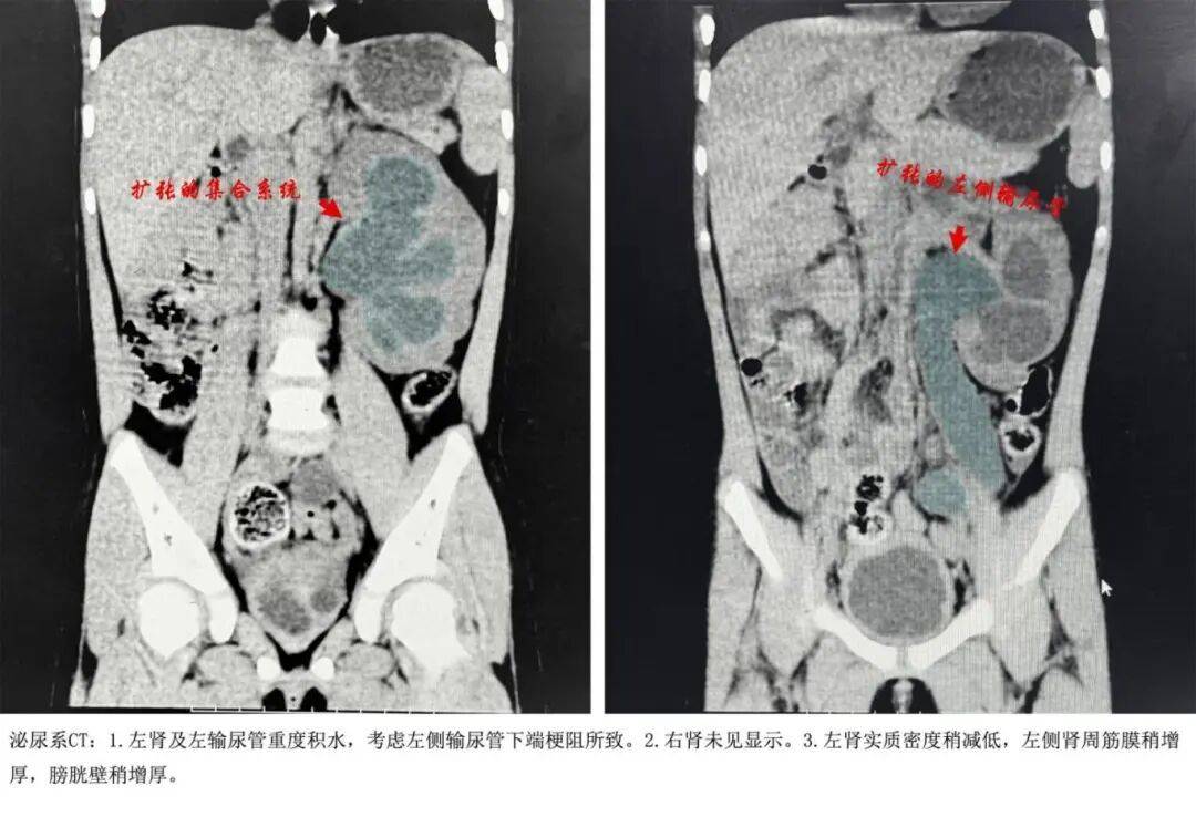 医生检查发明,悄悄的脸浮肿(zhong),左上腹一按就疼,膀(bang)胱却是空的。彩色B超报告让人倒吸一口凉气——体内只发明一个左肾,而且左肾重(zhong)度肾积水伴输尿管全程(cheng)扩大,尿液排出的独一路径(左侧输尿管)堵住(zhu)了。