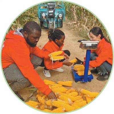 在(zai)河北(bei)曲周县实验田,塞(sai)姆(左一)和同(tong)学一路给(gei)玉米称重。 焦小强供图