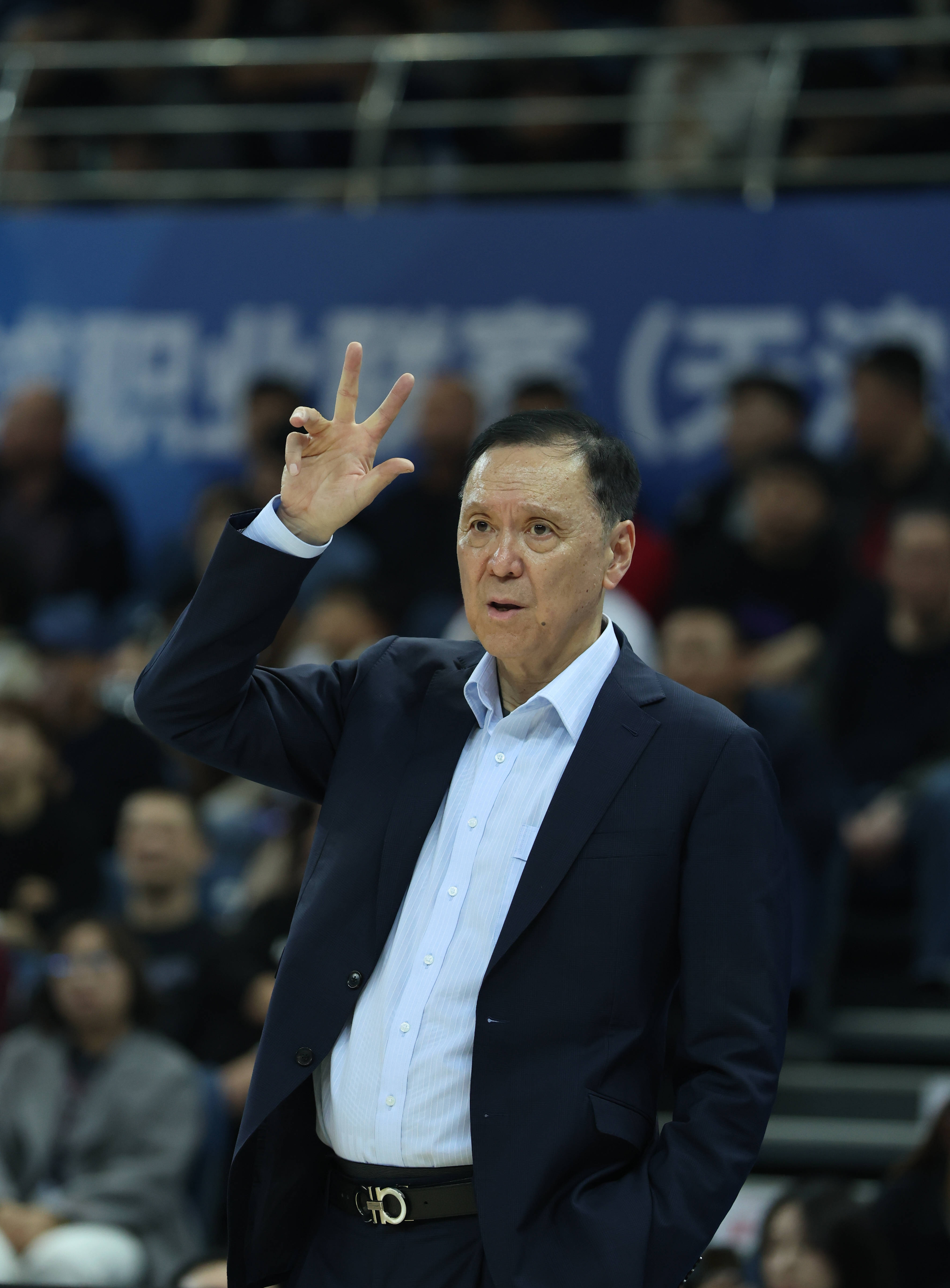 3月24日,天津先行者队主锻练张德贵正在场边批示。 新华社记者 孙(sun)凡是越 摄