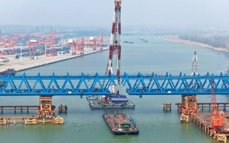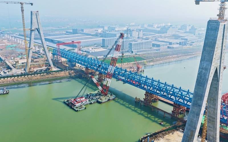 作为(wei)潍宿高铁全线控制性工程,跨京杭(hang)运(yun)河特大桥凭借多项技能突破创下行业记录:国内首次在高烈(lie)度地震区采(cai)用梁拱分(fen)散式全焊接钢桁梁系杆拱桥。该桥主(zhu)桥全长461.1米,采(cai)用(80+300+80)米下承式钢桁梁拱桥设(she)计一(yi)孔超过京杭(hang)运(yun)河,钢桁梁共分(fen)25个节段架设(she),桥面总宽达16.4米,总用钢量约1.28万吨,合龙段下弦(xian)及桥面布局(ju)单块重达118.3吨。因(yin)为(wei)地处高空、水上、大跨度施工环境,项目扶植(zhi)面对全焊布局(ju)线形控制、焊接精度把控、温(wen)度变形应对、大吨位吊装(zhuang)及三(san)向偏毛病调控等多重磨(mo)练,对施工技能和现场(chang)把控提出极高要求。