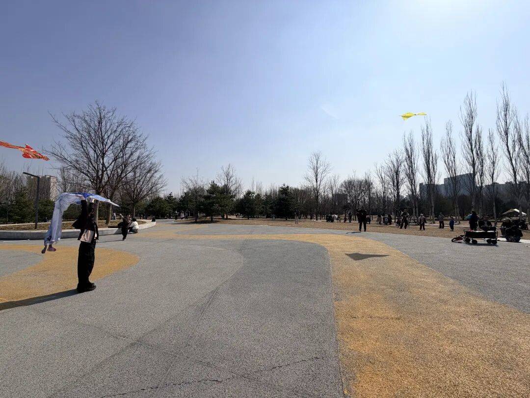 在公园的(de)小广场区域,不少(shao)市民在此放风筝,由于场地有限、风力不大,风筝大多(duo)没能飞上高空(kong),只是(shi)在低空(kong)来回穿梭、盘旋,有的(de)甚至横穿整(zheng)个小广场,细长的(de)风筝线紧绷(beng)着,如同一条条隐形的(de)“刀口”。