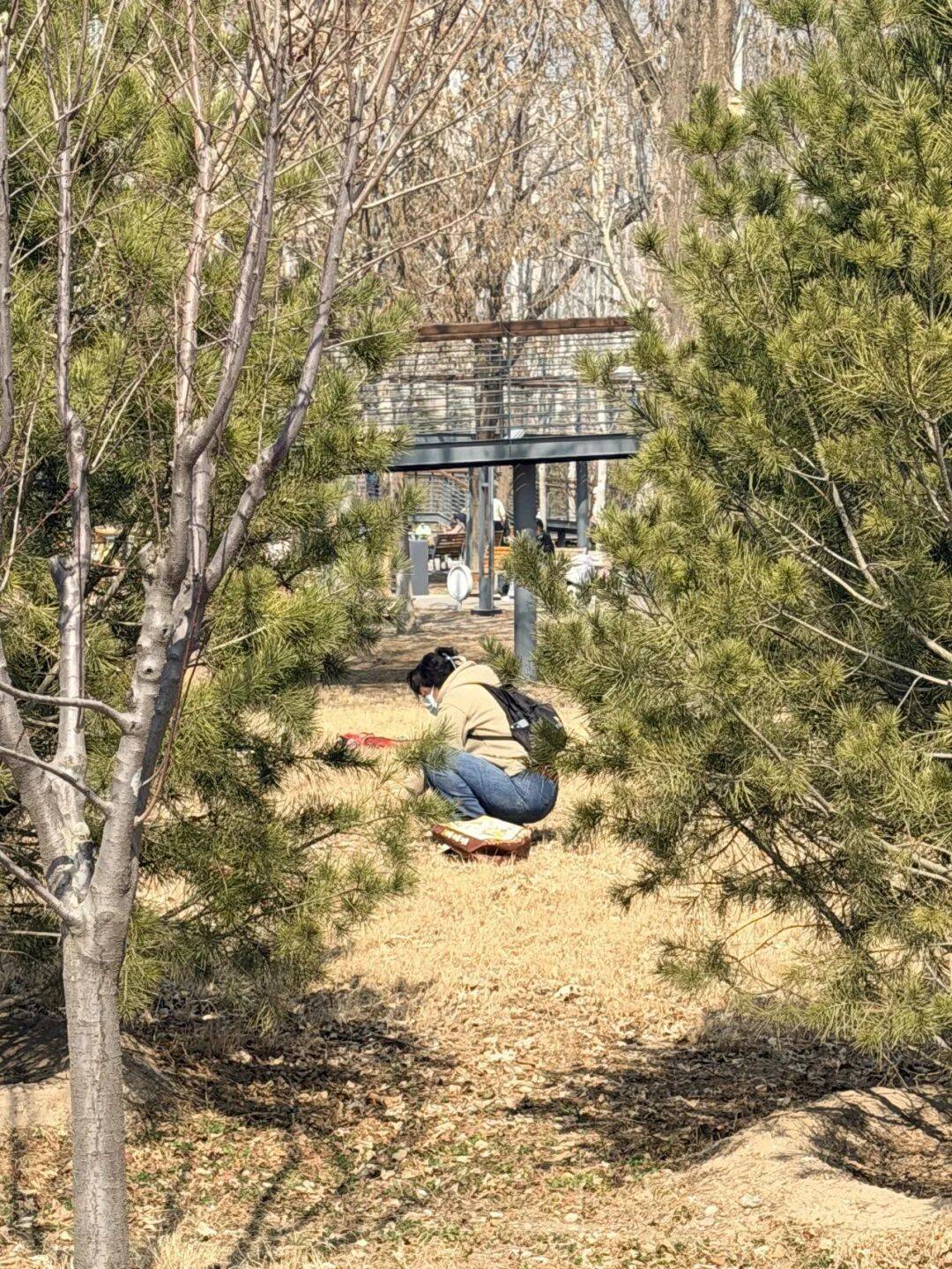 有人在公园内挖野菜。