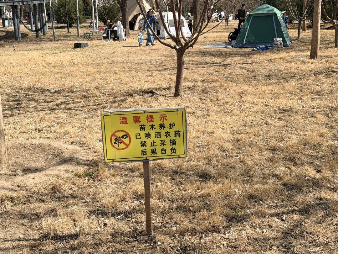 本(ben)报记者连续两日(ri)前往该(gai)公园走访发现,挖野菜的(de)行为每天(tian)都在上演(yan)。公园内随处可见上面写有“苗木养护,已喷洒农药,禁止采摘,后果自负”的(de)黄色警示牌(pai),但这些挖野菜的(de)人对此置(zhi)若罔闻。