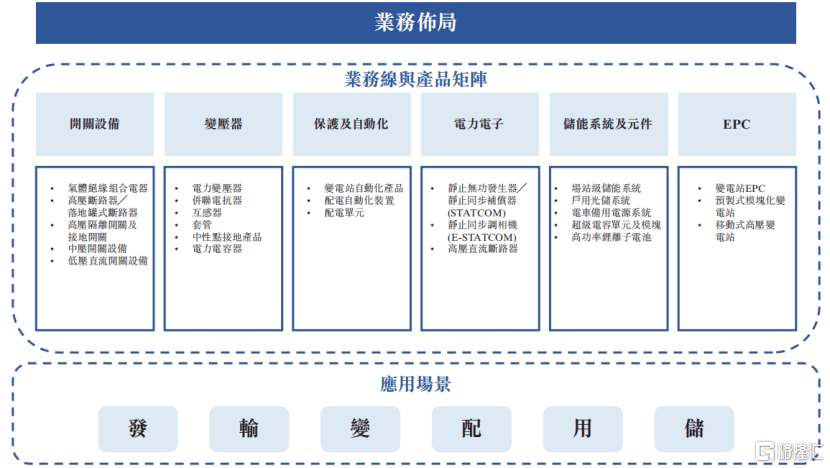 公(gong)司构(gou)建(jian)了覆盖开关类、变压器类、珍(zhen)爱及自动(dong)化类、电力电子类、储能系统及元件类、EPC类等六大核心业务线的产业链布局。