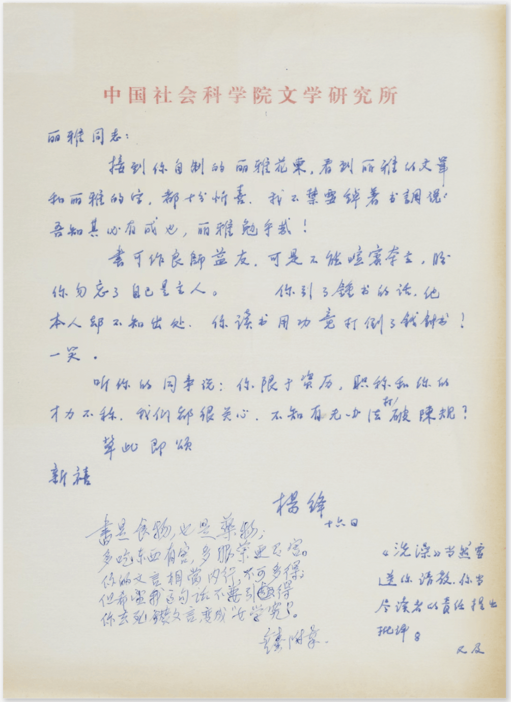 杨绛并(bing)钱锺书致信