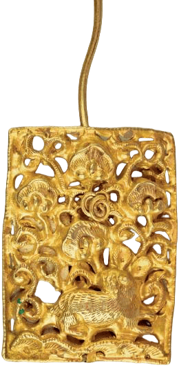 金灵芝瑞兔纹牌环部分 湖南临澧新合(he)元朝窖藏