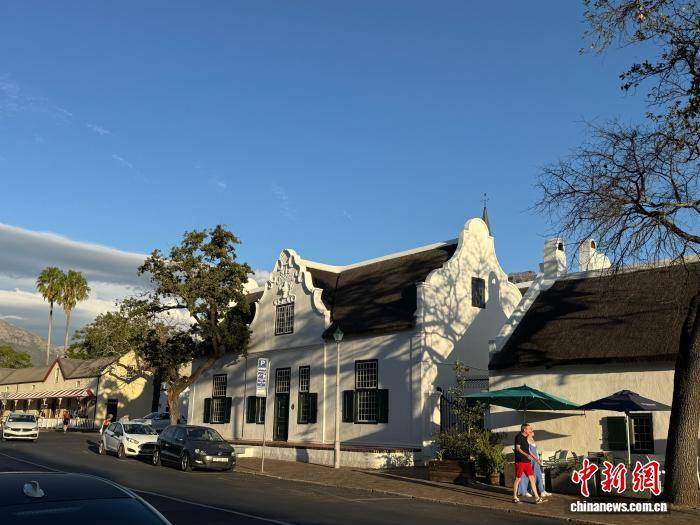 当地时间3月24日,斯坦陵布什一处开普荷兰式建筑,白墙曲线山墙风格鲜明。斯坦陵布什位于南非西开普省,建于1679年,是南非最古老的城镇之一。中新社(she)记者 孙翔 摄