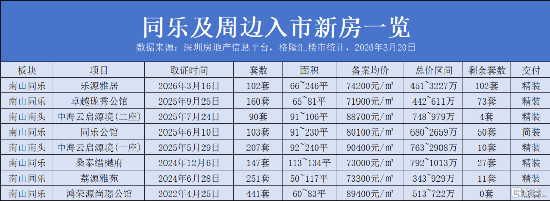 克日(3月16日),位于南山同(tong)乐板(ban)块的乐源雅居取证入市,102套66~246平住宅备案均(jun)价约74200元/㎡,总价区间约451万~3227万。