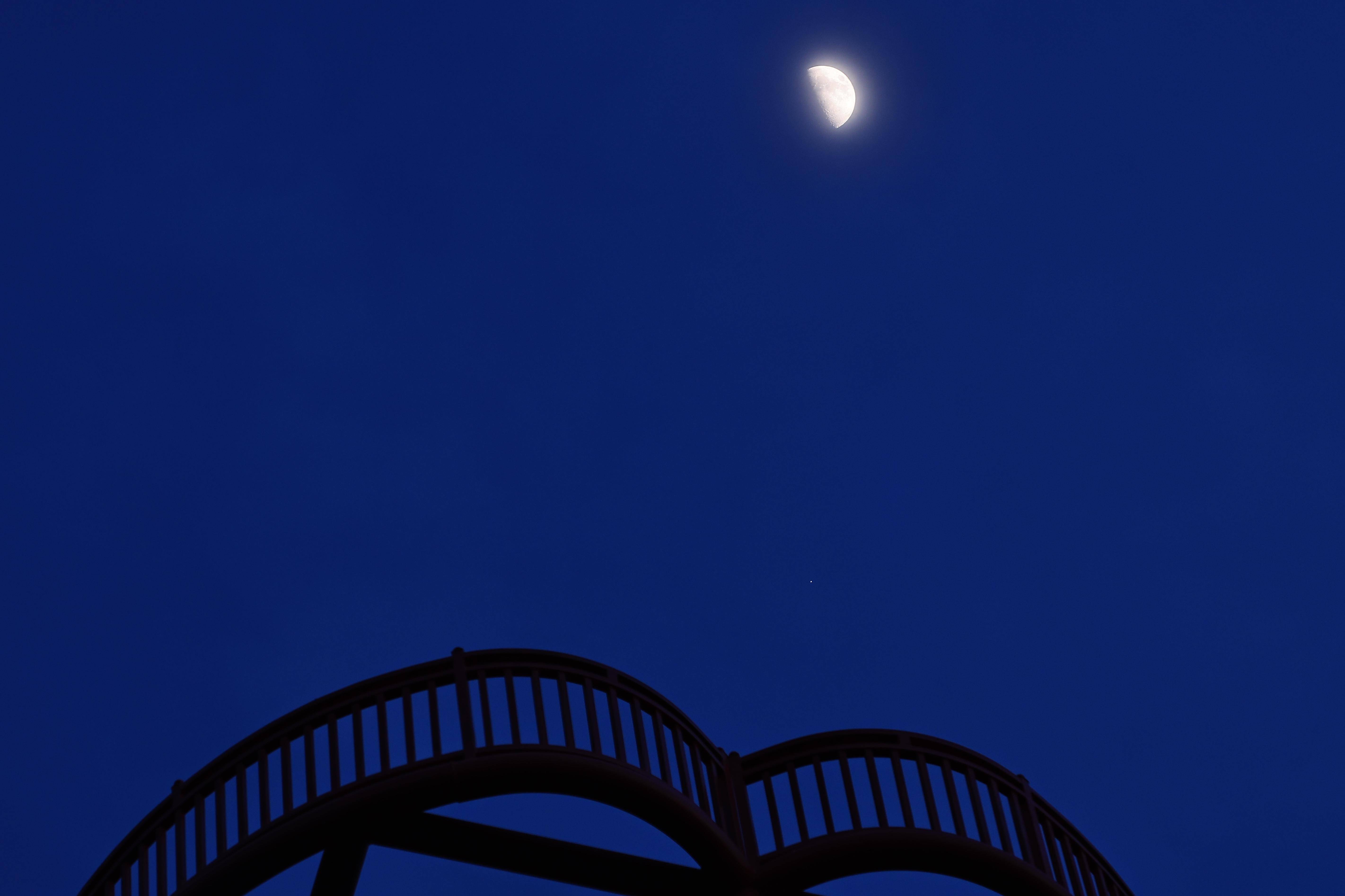 3月26日,太阳系八(ba)大(da)行星中(zhong)体积最大(da)的木星与一轮上弦月相合。当天日落后(hou),上弦月与木星一同出现在天顶,在双子座中(zhong)相伴,献上了一场高颜值的“星月对话”。