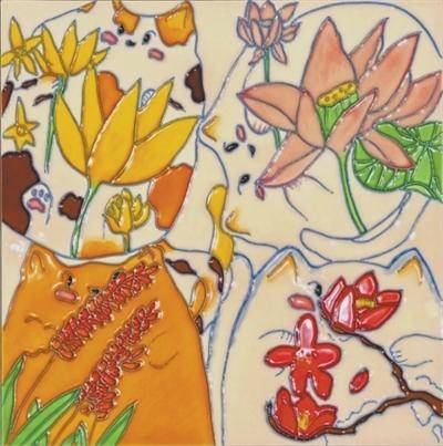 由河南洛阳山区孩子们的画作烧制而成的三彩釉画。