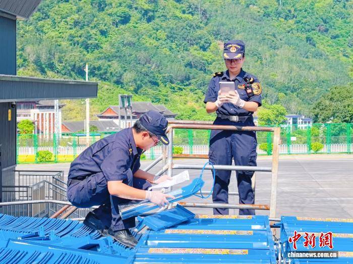 海关(guan)关(guan)员在天(tian)保(bao)港口对出口越南的农机展开查验。 万应超 摄