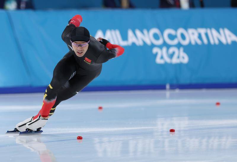 2月11日,宁忠岩在速度滑(hua)冰男子1000米决赛(sai)比赛(sai)中(zhong)。新华(hua)社记者 杜潇逸(yi) 摄
