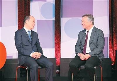 图为新航道(dao)国际教育集团董事长胡敏(左)与TED董事长克里斯·安德(de)森交流。 (新航道(dao)供图)