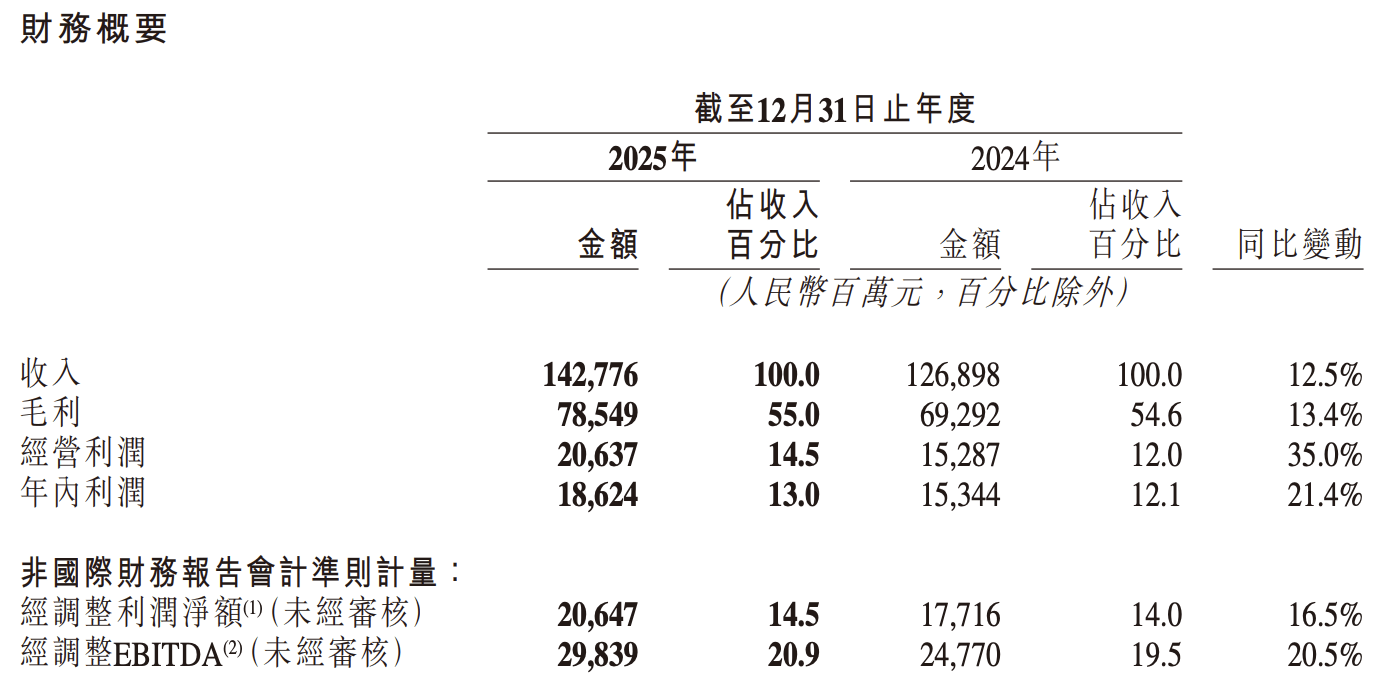股东回(hui)报方面(mian),2025年(nian)全年(nian)累(lei)计以约32.2亿港元回(hui)购逾5807万股B类股份,回(hui)购均已完成注销。此次发起(qi)的每股0.69港元末期(qi)股息,叠加2025年(nian)8月派付的每股0.46港元特别股息,合计全年(nian)每股派息达1.15港元。