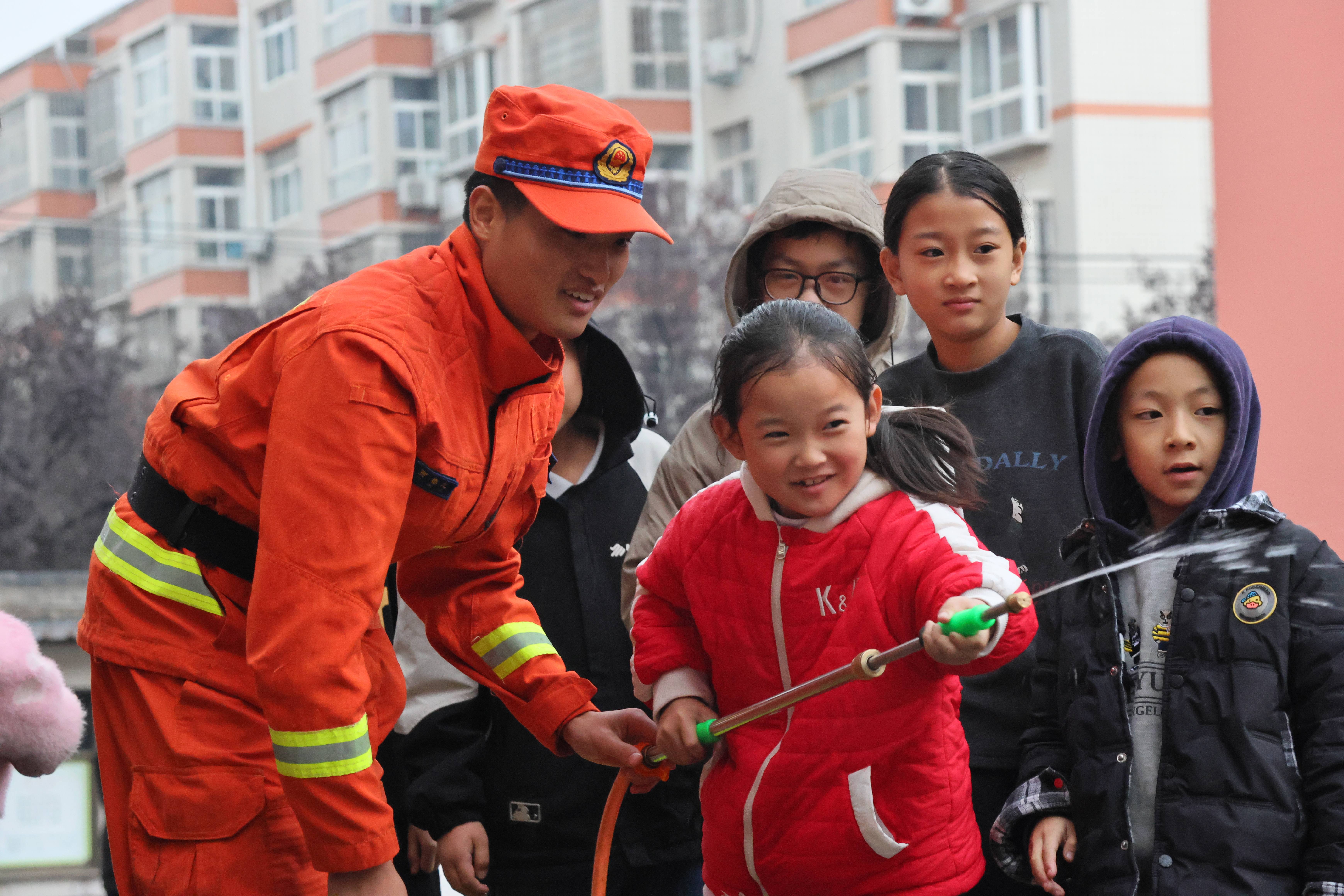活(huo)动(dong)现场,宣讲员指导学生(sheng)体(ti)验灭火过程。受访者供图
