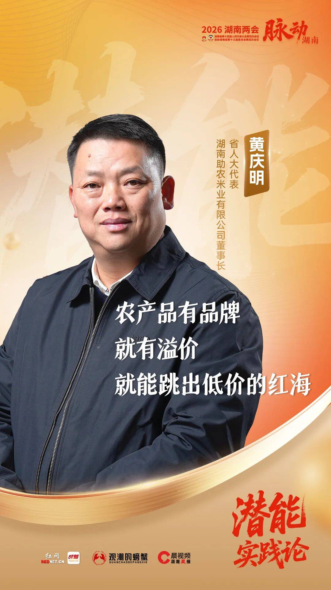 黄庆(qing)明是湖南助(zhu)农米业有限公司(si)董事长,眼下,他作为省人大代表正在(zai)参加2026年湖南省两会。