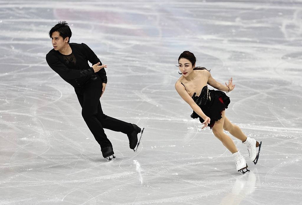 陪(pei)同《爱情是一只(zhi)顽皮的鸟儿》的改(gai)编版,北京(jing)奥运会冠军隋文静/韩(han)聪全(quan)场第二对进场,开场后外点冰三周隋文静落(luo)冰翻身,点冰起跳的捻转三周采用单(dan)手(shou)过火的tano姿势,拿到四级定级,抛后内点冰三周顺(shun)利做成,内刃螺旋(xuan)线、接续步伐都是三级,技能分(fen)39.28、节目(mu)内容分(fen)33.38,获得(de)72.66分(fen)排(pai)名(ming)第六。