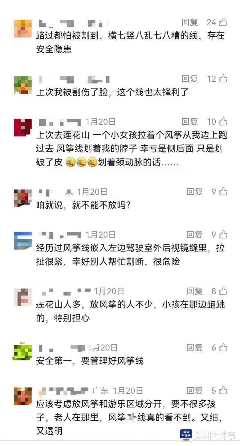 不少市民建议,作(zuo)为深(shen)圳最具人气(qi)的风筝放(fang)飞点,公(gong)园方是否应(ying)考虑重新(xin)评估该选址的长期安(an)全性,或通过设置防护网、调(diao)整广场布局等物理方式,降低(di)风筝线对周边环境的潜在威胁?